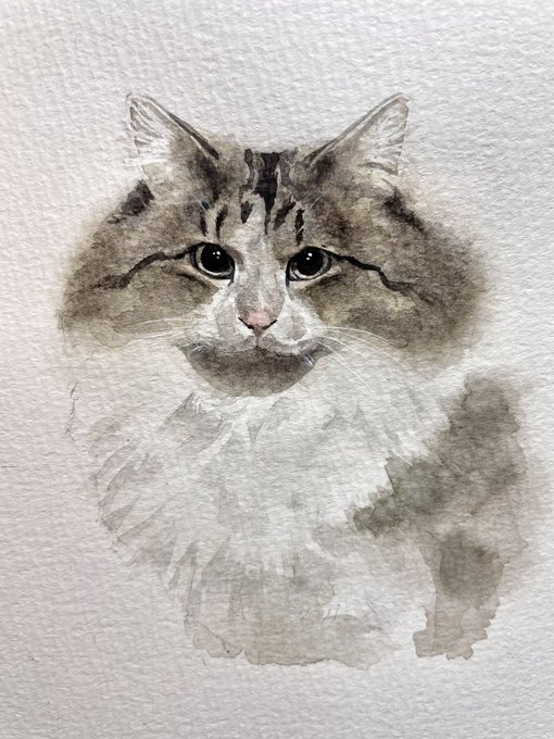 22 178 ふわふわ #水彩画 #猫 23/01/28 16:51