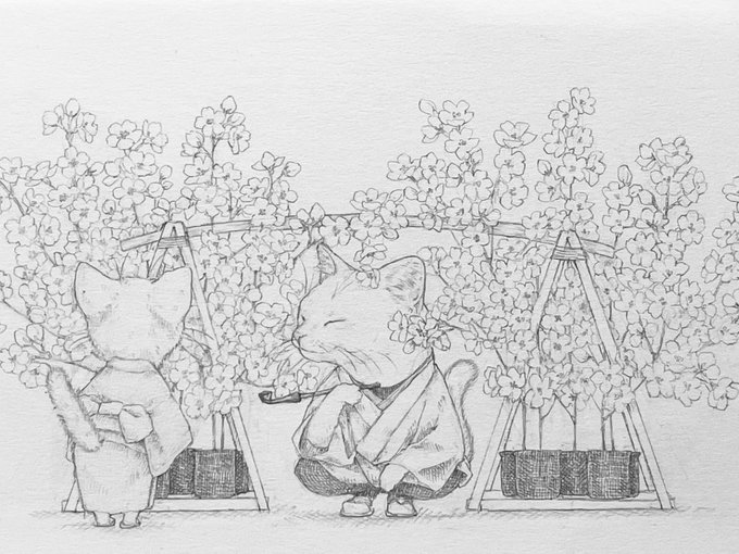 8 34 花売りの猫さん #桜 #アナログ絵 23/03/26 14:48
