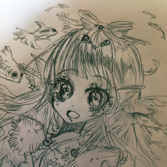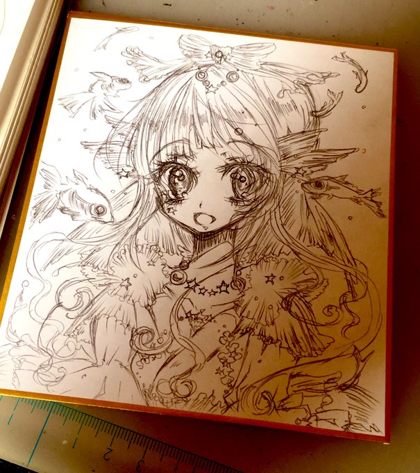 なんとか描けた!金魚娘ラフ 色紙にも描くよ〜 #イラスト #ラフイラスト
