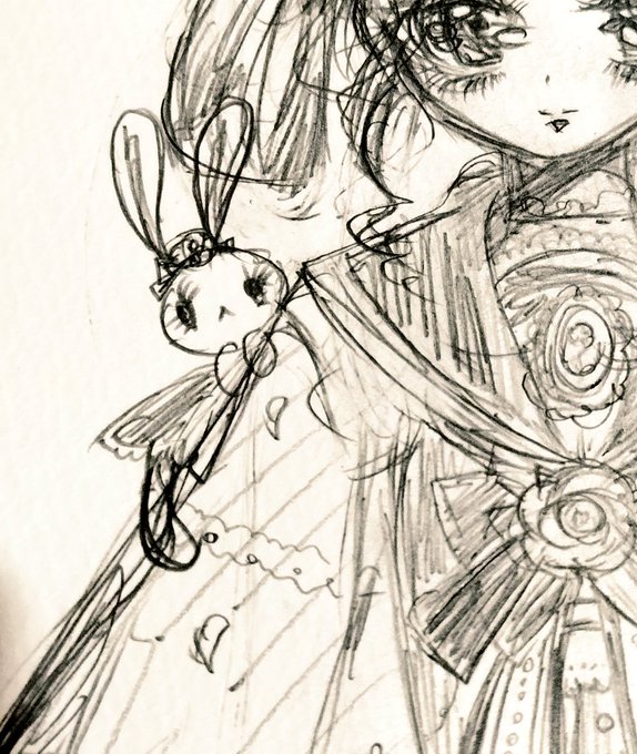 年賀状のラフ描いてます。 うさぎ、好きです。隙あらば絵に出しちゃう。来年はうさぎ年🐇 #イラスト #イラスト進捗