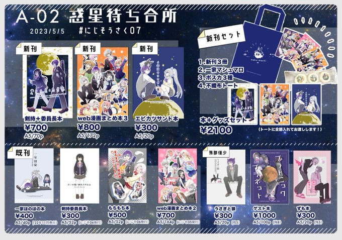 #にじそうさく07 頒布のグッズのみセット通販案内(※BOOTHは4/29まで) ポスカのみ→melonbooks.co.jp/detail/detail.… グッズ全部→fukono.booth.pm/items/4178387 (5/5以降順次発送・同人誌は付随しませんのでご入用の方はメロブ通販のご利用をお願いします)