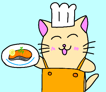サーモンのソテーを作ってくれたねこ🐟 ✨ #イラスト #さかな #ねこ