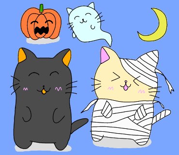 4 66 ハロウィンパーティ😺🎃👻🌙 #イラスト #ハロウィン #かぼちゃ #ねこ #おばけ 22/10/20 07:31