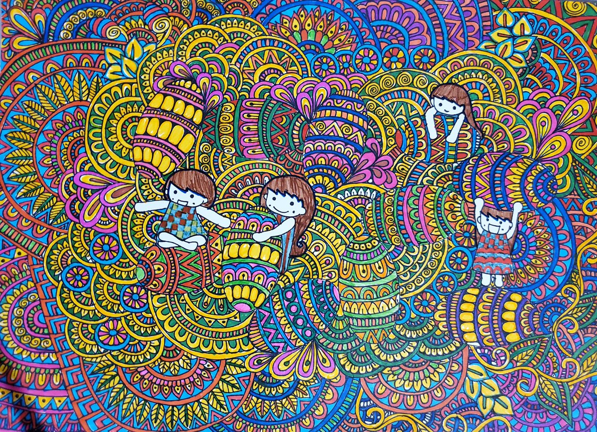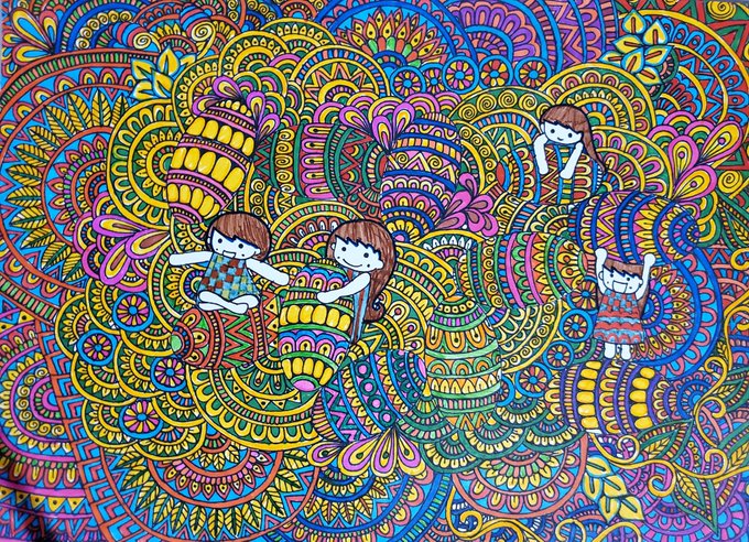 ★いつも違う色使い #アート #ペン画 #ゼンタングル #オリジナル #イラスト
