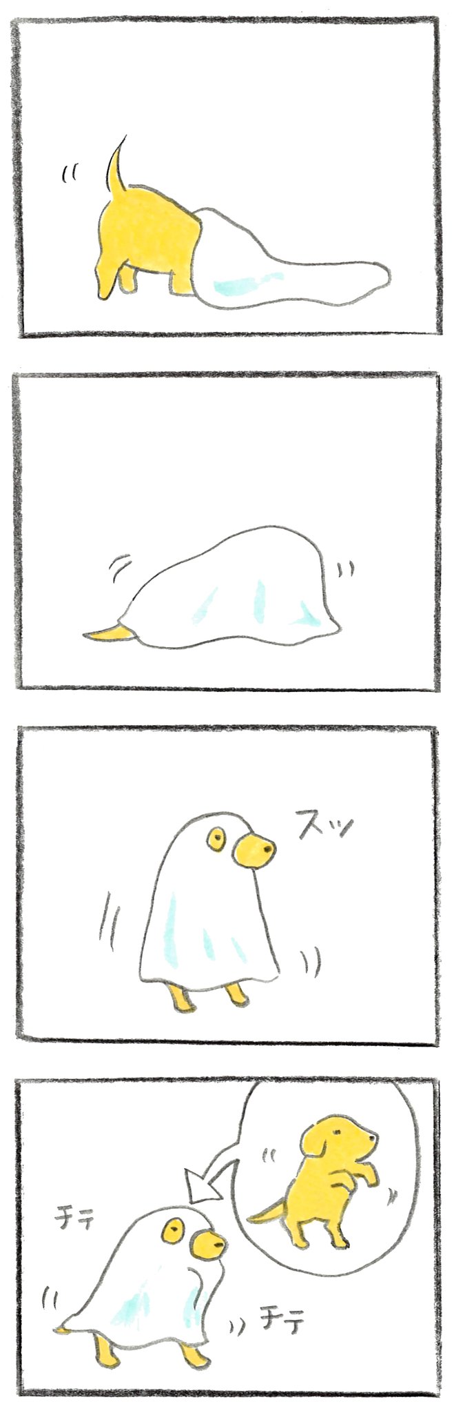 ポチ、オバケの練習中です☺️ #4コマ漫画 #ハロウィン #ハロウィンイラスト展示会2021 #ラブラドールレトリバー