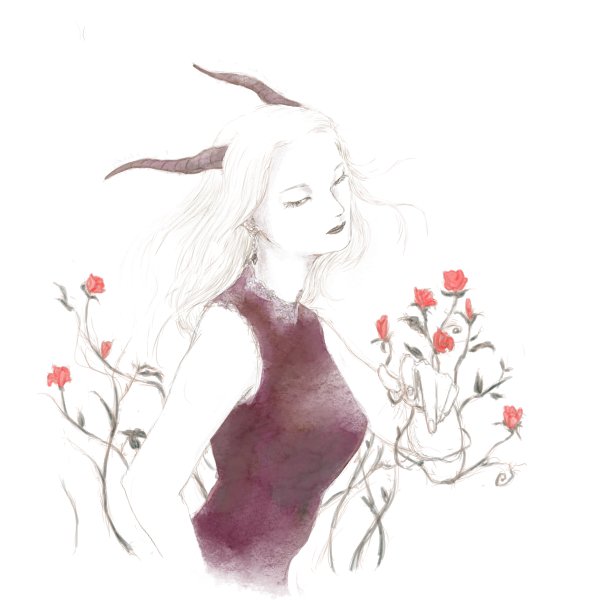 角生えた女性と薔薇。 #イラスト練習中 #イラスト好きさんと繋がりたい #イラスト好きと繋がりたい #オリジナルキャラクター