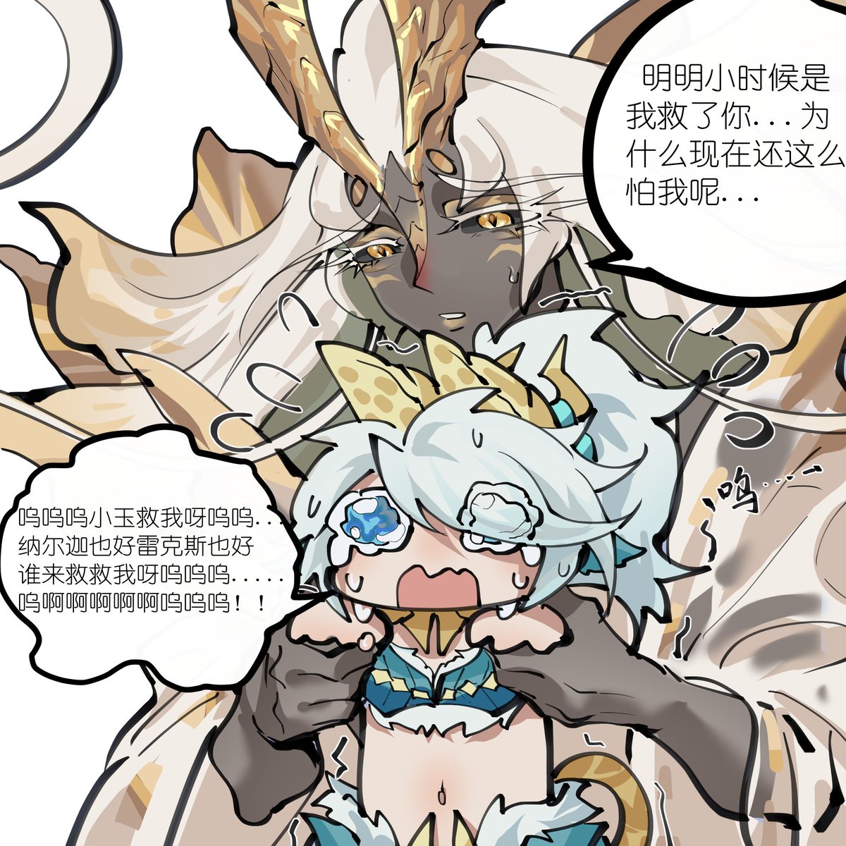 追加妹宝战斗中的三阶侵蚀状态,洁癖妹宝被吓的瞬移,吓的龙车,吓的把哥哥和猎人一起撞骨折了。