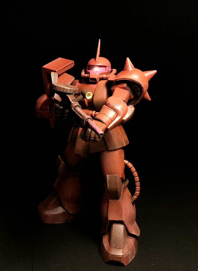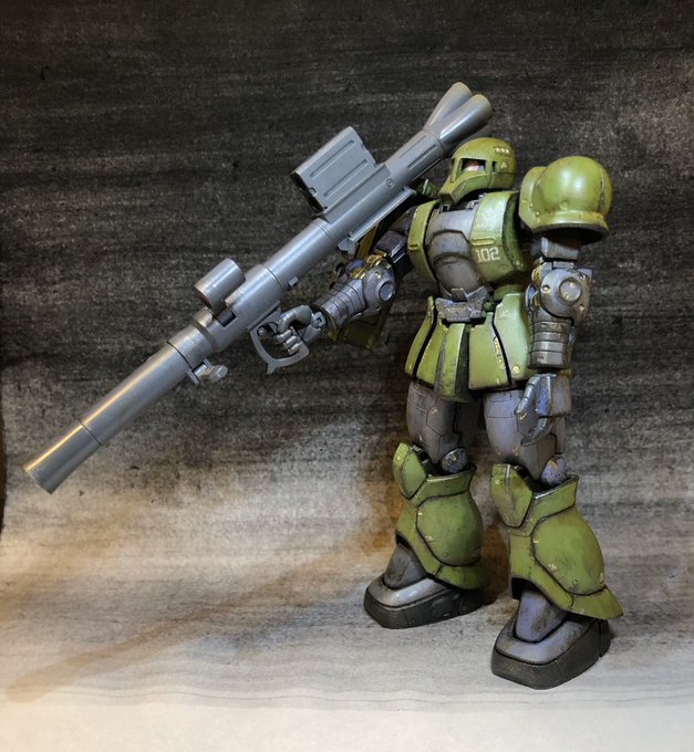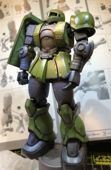 息抜きにオリジン旧ザクの簡単汚し仕上げに挑戦してました。 汚し楽しくて、全然簡単に終わりそうにない。 #ガンプラ