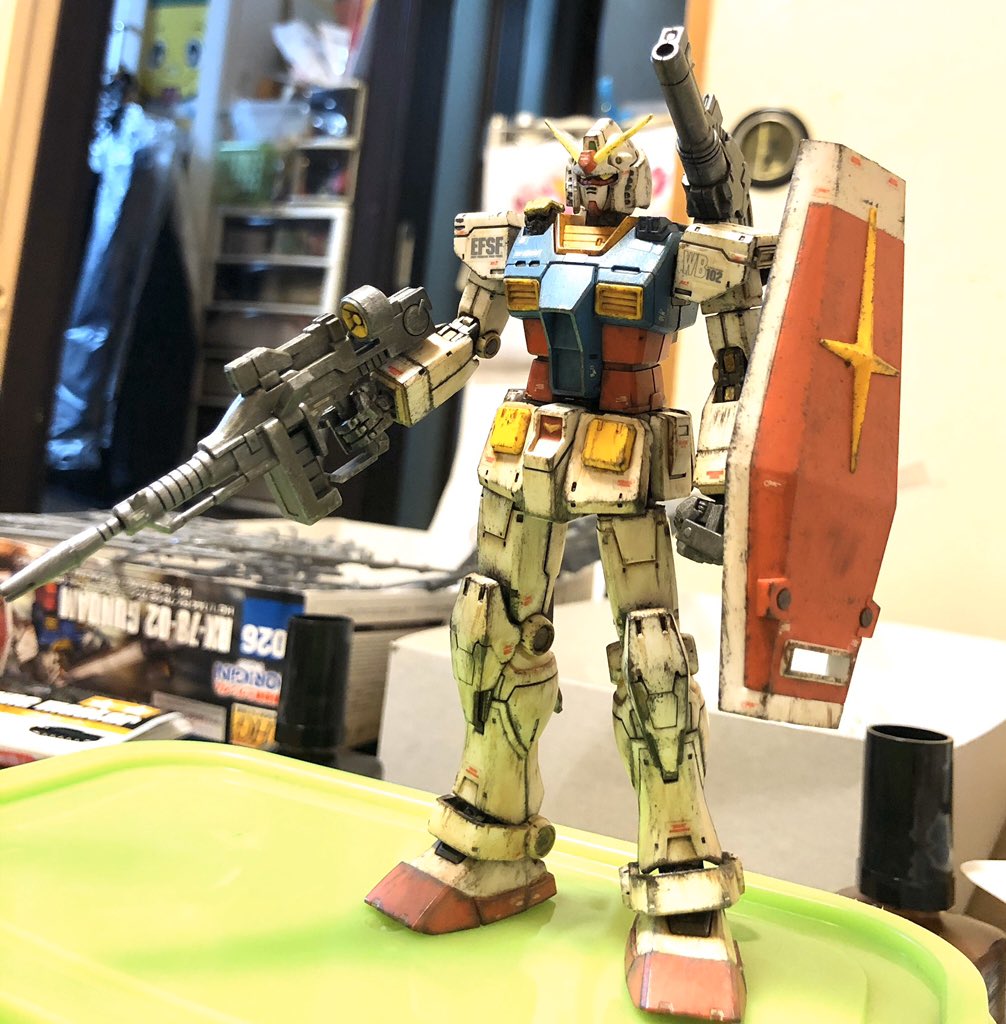 2 17 オリジンガンダム初期型ひとまず完成です。 ライダーjoeさんの簡単汚しの作風参考に汚しましたが、完成までひと月かかりました。 #ガンプラ #オリジン 20/04/20 00:04