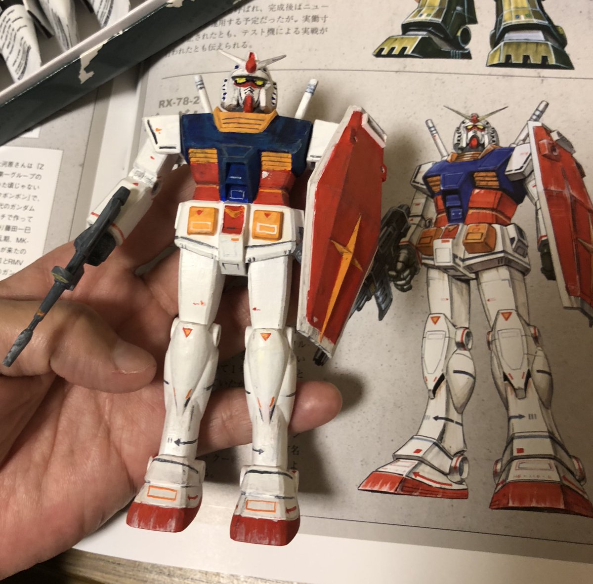 91 1108 チョコチョコ作っていた、旧キットのガンダム 完成しました。 手描きマーキング難しかったですけど、楽しかったです。 改造無し素組みですけど、自分的には小学生の時に欲しかったガンダム が完成できて満足です。 #旧キット #ガンダム #ガンプラ 20/05/09 02:14