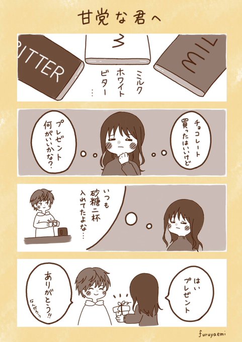 【3ヶ月上達法振り返り漫画】10/12 10巡目イラスト▼ twitter.com/fullfull314/st… 個人的にチョコレートが好きなので、バレンタインと言わずいつでもプレゼントがほしいですね🍫代わりに漫画と絵を見ていってください #3ヶ月上達法 #振り返り漫画 #4コマ漫画 #漫画が読めるハッシュタグ