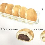 だいぶ前に描いた水彩紙の試し描き。 ウォーターフォード紙(ナチュラル)中目。 ベースが暖かみのある色なので 優しく懐かしい雰囲気に仕上がりました。 アレンジはおまけで…。 かわいいサイズのクリームパン。 並んでる姿が好みです。 フワコロでおいしいですよ。 #イラスト #水彩画 #パン