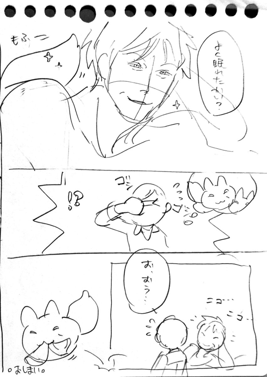 0 9 #このタグを見た人はラフ画とその完成絵を見せる pixiv.net/artworks/76374… 2019年夏の無配に掲載した漫画とそのラフ 20/05/17 13:43