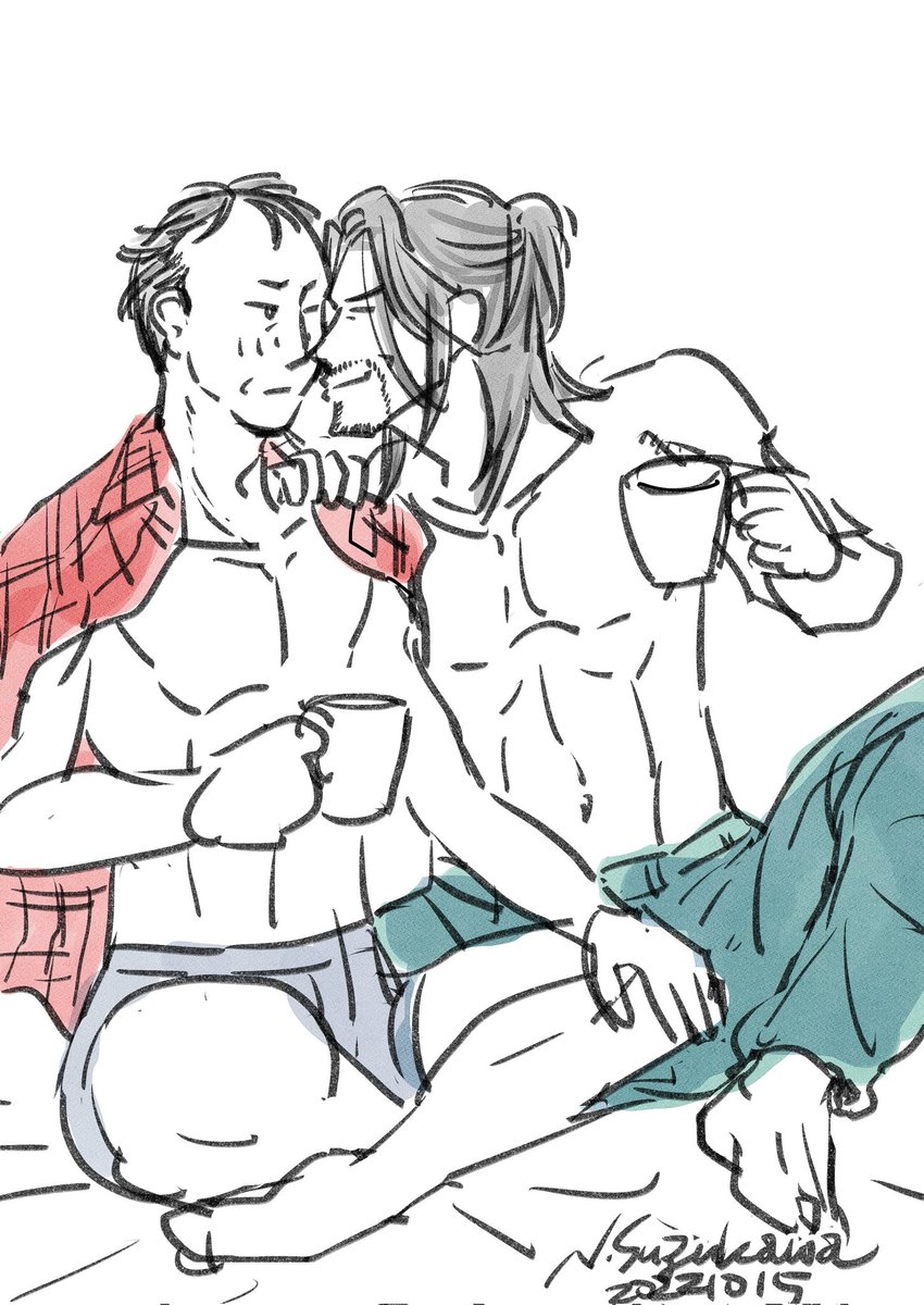 #今月描いた絵を晒そう ほぼほぼえざうしらくがき 他人からみたらロン毛の髭面とM字ハゲメガネというキッツイ絵面でも、関係性に萌えちゃったんだからしゃーない😹