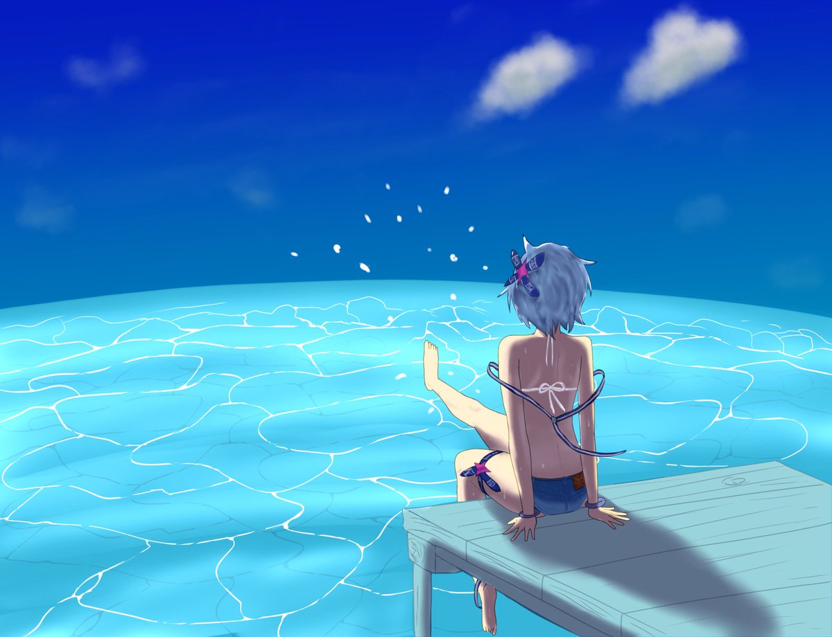 ワンピースタイプって指定があったの忘れてたけどいいや…お腹だよお腹、ギャラルはお腹って決まっているんだ あと紙の大きさという制約があるとこの構図になりがちなのいい加減に対応すべき #ファンキルファンアート #ふぁんきるぎゃらりー