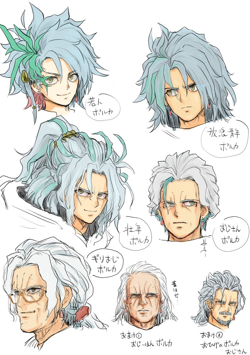 「ポルカ加齢模様」 ずみこさん(@fazz88)からのお題より”おっさんポルカ”🫠 せっかくの機会なので色々描いてみました🐸 中々勉強になりそうな予感もありますので、お題はちょこちょこ募集させて頂こうかな、勿論直接くだすっても大丈夫です👻