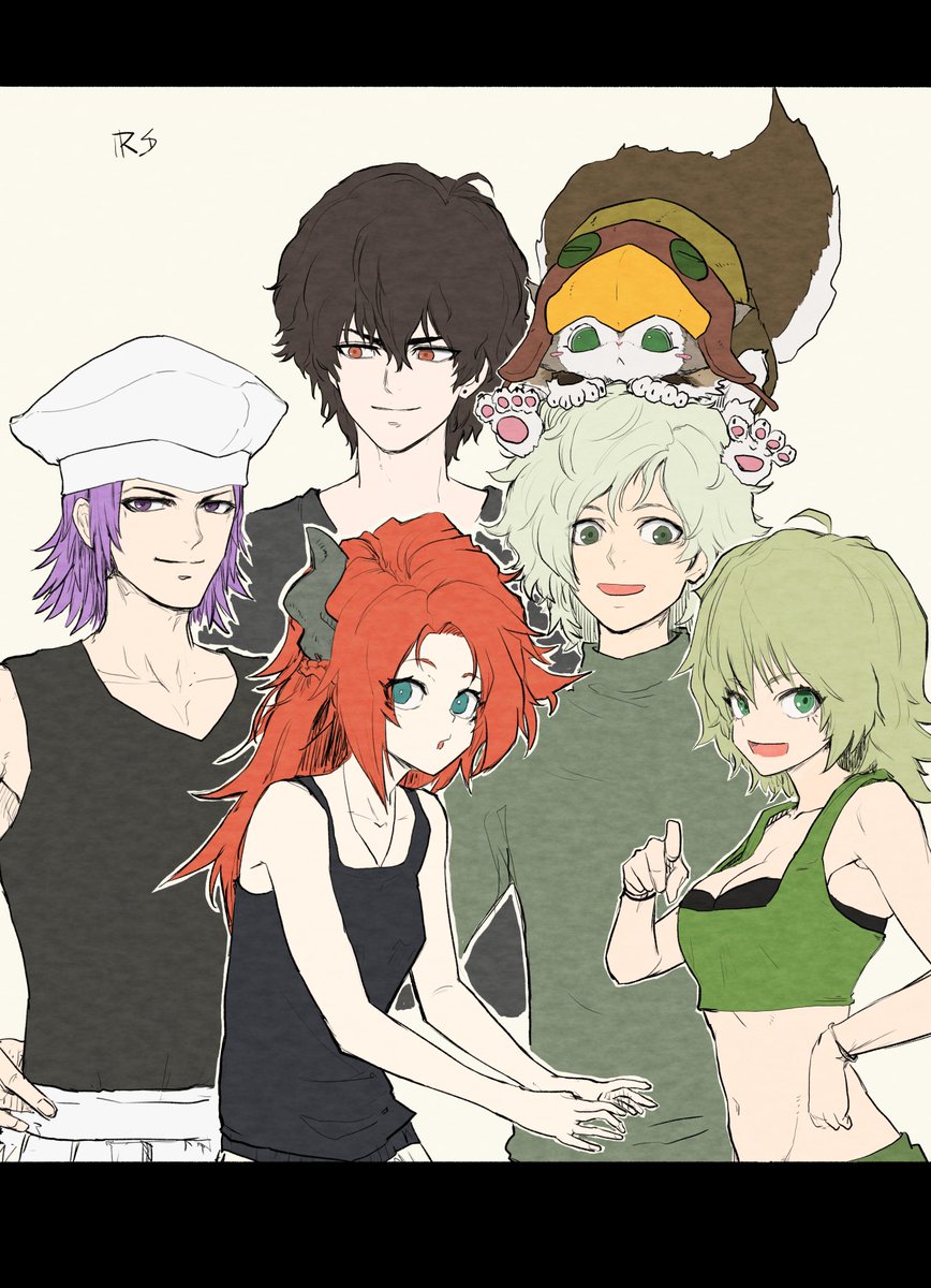 23 119 「リアム、アーニャ、ダリアス、キャンディ、アーサー、アニー」 ダリアスさんは最近ちょっと古矢の趣味に走って調子乗って毛を伸ばし気味だったので、ちょっと短く。代わりにリアムさんを主人公補正で増毛気味🫠 #サガ絵 23/03/25 00:01