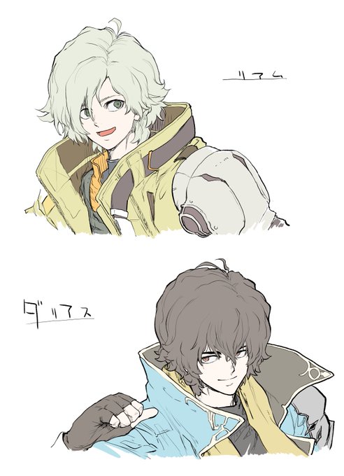 「リアム、ダリアス」 さて、劇中では物語が一段落 何となく二次創作にまだ不慣れな所為でしょう、それこそが自由度にやって良いという免罪符に感じる様 新たに追加された絵の二人もビシっと散髪されたようにも伺えますが、古矢は絶賛髪の毛もじゃもじゃ病に罹患中なので自由に真逆です🫠 #サガ絵