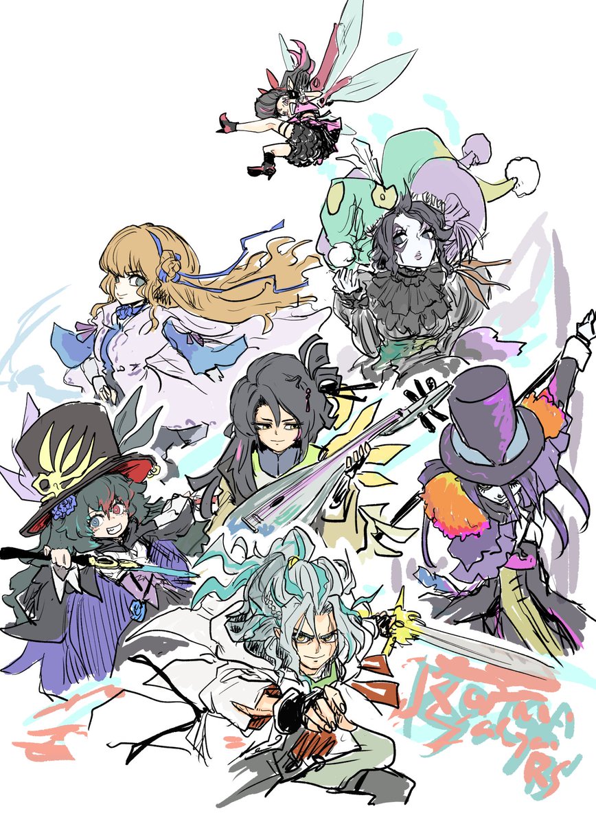 「シィレイたち」 出たキャラちょっと描いて寝ようと思ったらそうは行かなかったので、 ざっと皆描いたらずいぶん眠くなった🫠 さてこの中から誰が来てくれるのかな~ #ロマサガRS前夜祭 #サガ絵