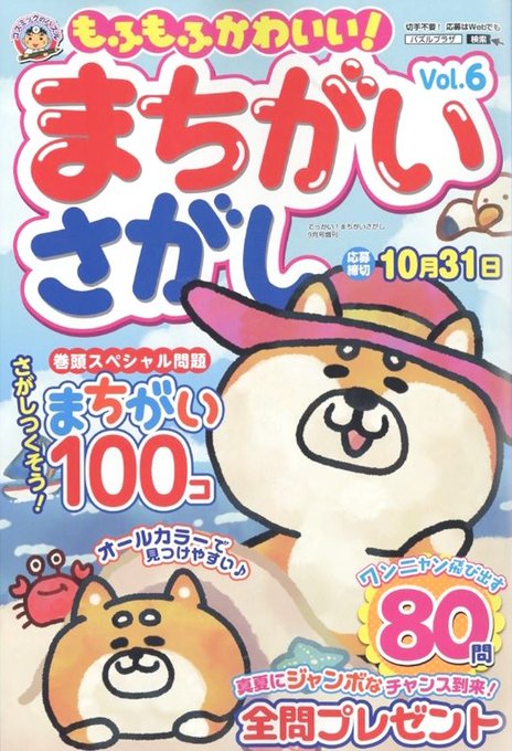 7/28発売中 『もふもふかわいい!まちがいさがしVol.6』に掲載されました! 夏だ!海だ!砂堀さいこーだぁ~🐶 #イラスト #ゆるキャラ #動物イラスト #ゆるふわイラスト #水彩画風