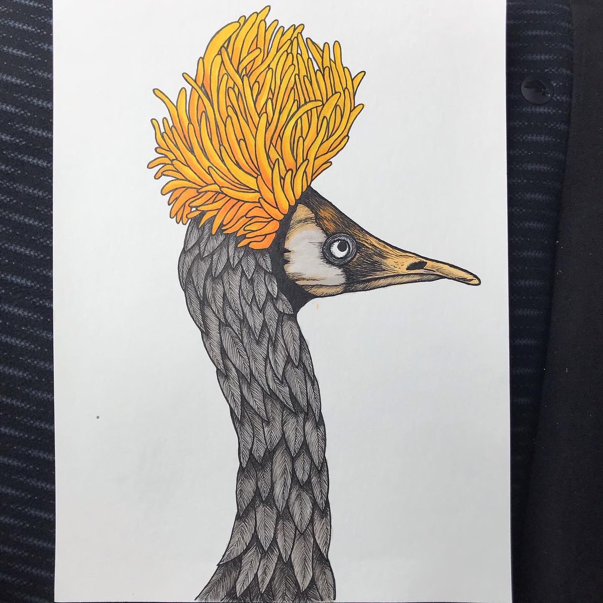 鳥さん、完成。 鳥って飛んでる時より ジッとしてる時の方がカッコイイ #ペン画 #ペン画イラスト #ペン画アート #アナログイラスト #鳥 #トリ