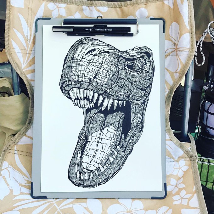 0 26 ジュラシックワールドを映画館で見ました。 全編ハラハラドキドキでグッタリでした。 でも、もう一回見たい。 という事で恐竜描きたくなるよね。 #ペン画 #ペン画イラスト #ペン画アート #アナログイラスト #恐竜 #ジュラシックワールド 22/08/13 11:35