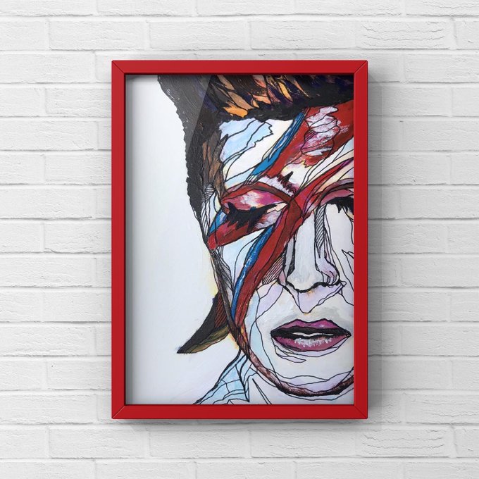 1 23 アクリル絵の具に挑戦。 色々試しながらのデビッドボウイ。 ペンも重ねてみました。 #アクリル画 #ペン画 #ペン画イラスト #ペン画アート #アナログイラスト 22/10/14 19:39