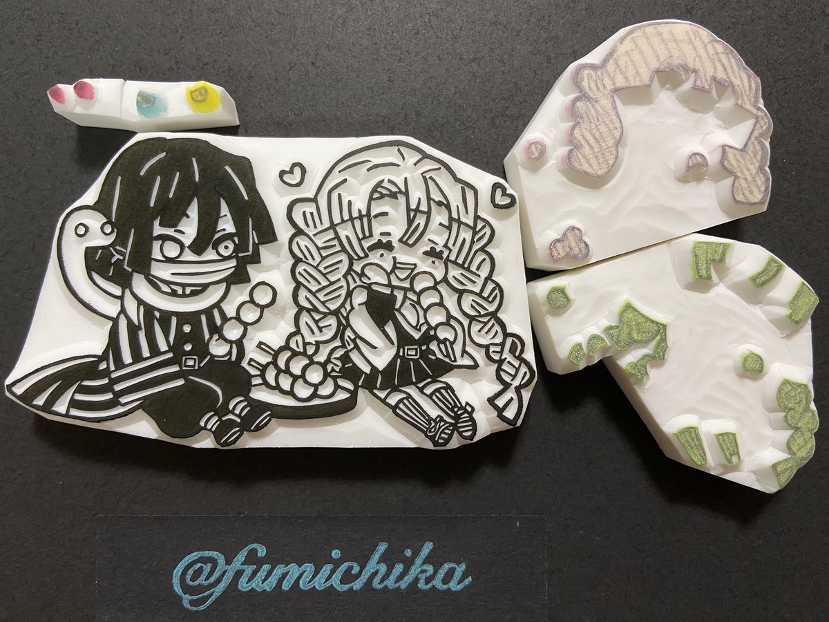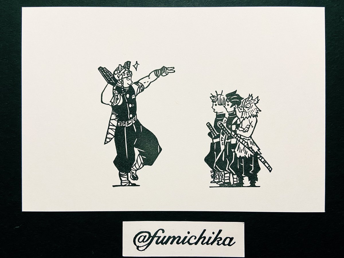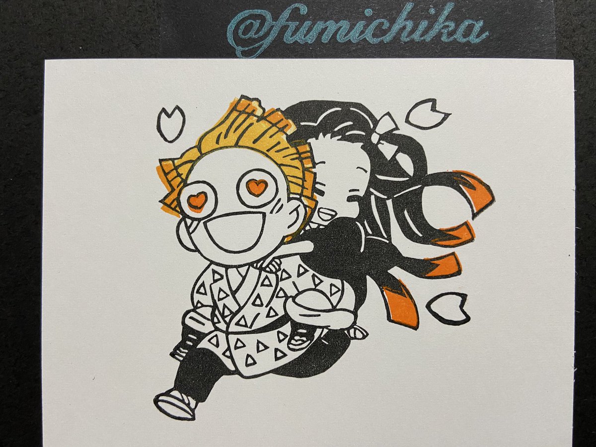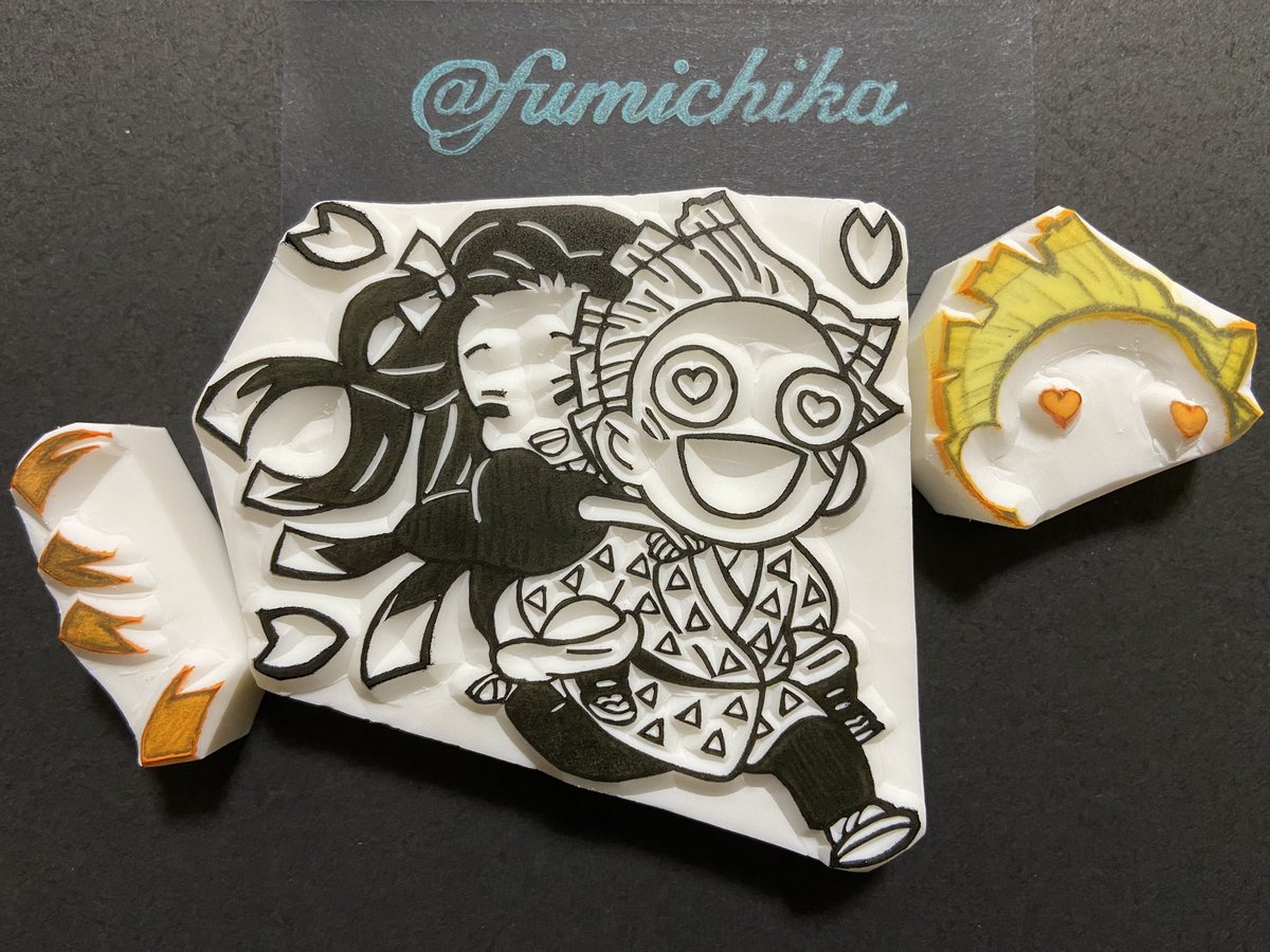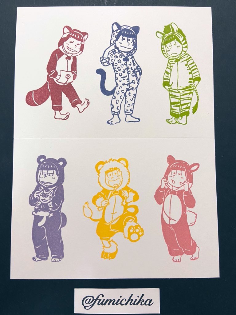 #2020年自分が選ぶ今年上半期の4枚 色紙に押して飾ってる柱とかまぼこ+ねずこはかなりお気に入りだし、名前だけでもカッコいいし、アニマルパジャマの6つ子は最高にカワイイ。 #消しゴムはんこ