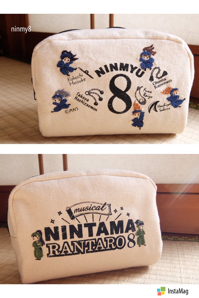 1200 2247 忍ミュ8弾グッズのポーチ、五年生の得意武器デザインが可愛いので各自に扱ってもらいました。がんばれ五年生! 六いの先輩二人が見守ってるよ!(全員刺繍してます) 17/01/15 14:14