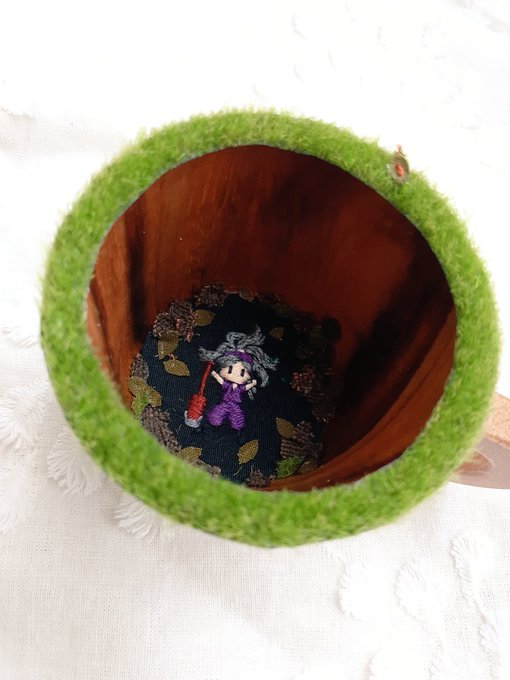 生物委員会委員長代理、竹谷八左ヱ門先輩のモッフモフな髪の毛からミノムシを探せる刺繍ができました! #忍たま刺繍