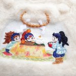 かまくらと五年生 兵助が持ってるのは湯豆腐です。 鏡開きだろうと湯豆腐です。 ぶれない男なのです。 #忍たま刺繍