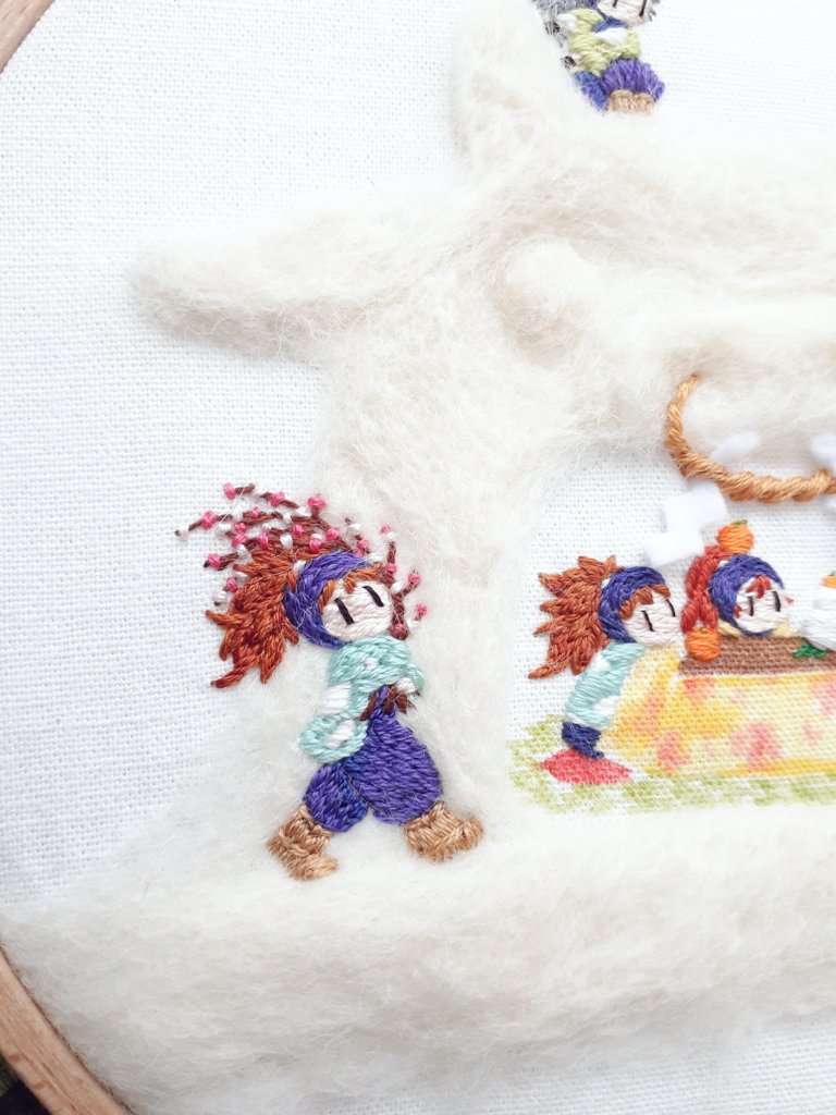 78 398 かまくらと五年生 兵助が持ってるのは湯豆腐です。 鏡開きだろうと湯豆腐です。 ぶれない男なのです。 #忍たま刺繍 21/01/11 15:54