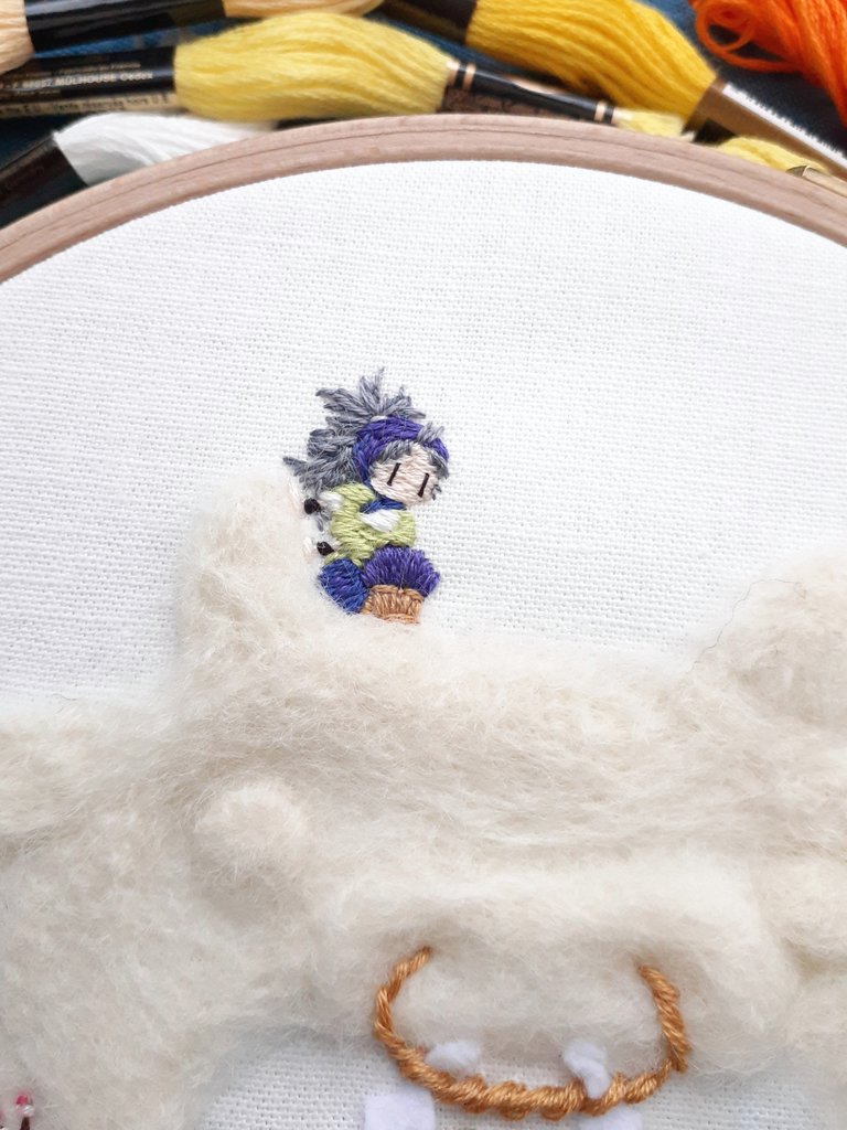 331 1422 生物委員会委員長代理、竹谷八左ヱ門先輩のモッフモフな髪の毛からミノムシを探せる刺繍ができました! #忍たま刺繍 21/10/11 08:55