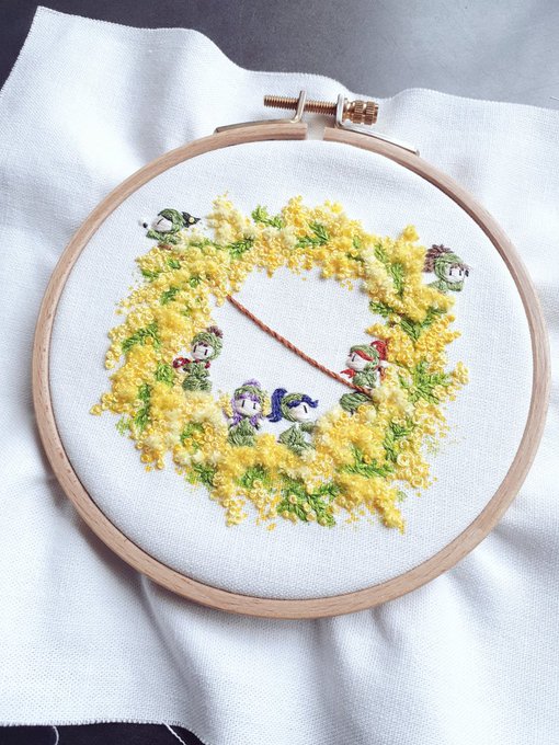 内番中にうっかり綿毛と飛ばされる秋田藤四郎君の刺繍ができました。 #とうらぶ手芸部
