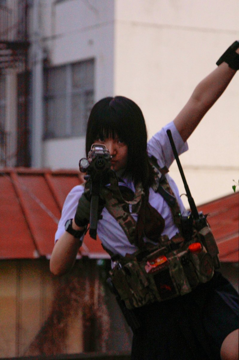 女の子が片手で銃持ってるの、映画みたいでかっこいいな??🥰
