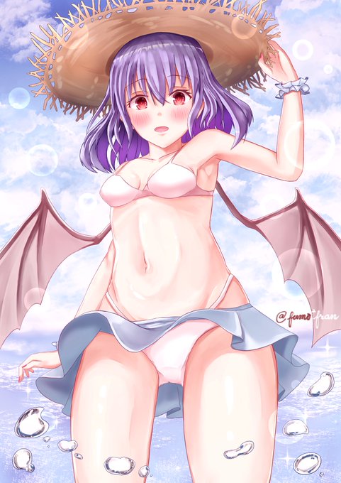 レミリア 水着(੭ ᐕ)੭*⁾⁾ レミ「さあ、泳ぐわよ( * ॑˘ ॑* ) ⁾⁾!!咲夜〜!!紐取れちゃったから結んで…!!♡♡」 おぜうさまには、パチェリー様の水避け魔法がかかっております(脳内設定) #東方Project #レミリア #レミリア・スカーレット