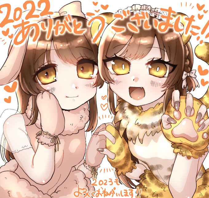 描き納め滑り込み!2022年はありがとうございました!今年もよろしくお願いしますーー!!🐰🐯
