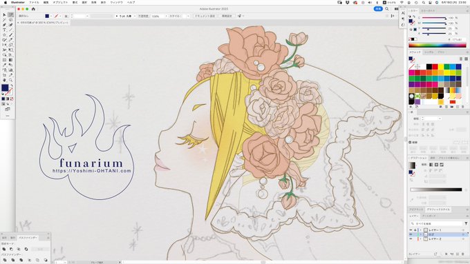 #自分の代表作だと思う絵を一枚だけ選んでみよう twitterのヘッダーもだけど、SNSとか投稿サイトのヘッダーとかどこでも使っているからこれが代表作みたいになってると思う。実寸はM30号でかなり大きいです。