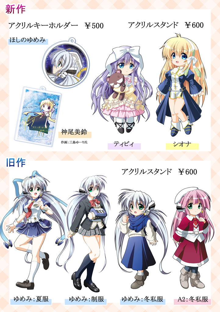 14日の鍵島9のお品書きです。 A34「酔いどれ合唱隊」にてお待ちしております。 4枚目の三島ゆーりさんのカードは無料配布で、おひとり様1種につき1枚ずつまでとさせて頂きます。 こちらは当サークルでのお買い上げの有無に関わらずお持ちいただけますのでお気軽にどうぞ。
