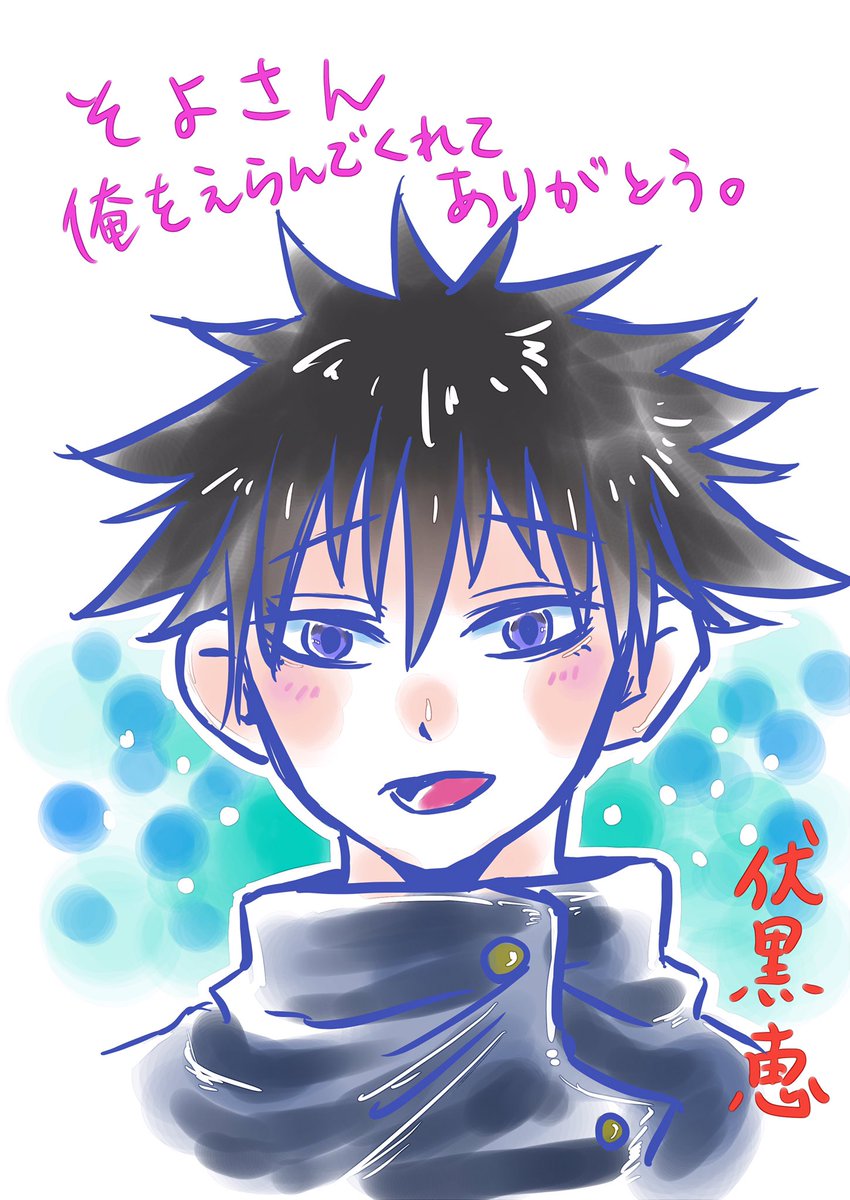 #フォロワーさんの推しが描きたい そよさん(@soyokaze_natune )から 伏黒くん寝起きならふわふわした表情してそうですよね、ってやつ。