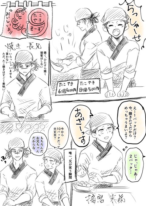 14 70 らくがき たこ焼き屋さんを営む兄弟 繁忙期には他の兄弟も店に入る。 21/12/15 20:43