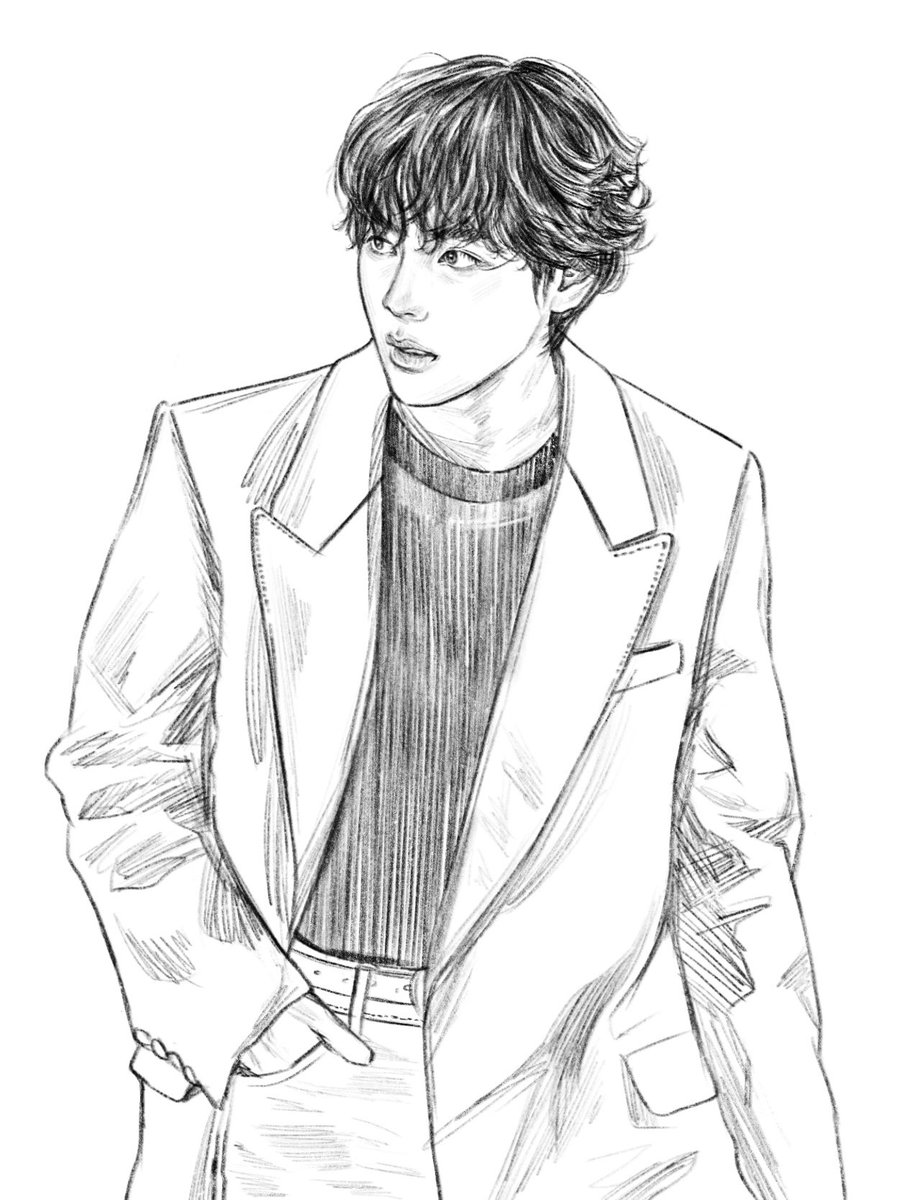 テヒョンさんは愛と美の神 先日アップした大遅刻のホソクさんをたくさんの方に見ていただいて嬉しかったです🙌ありがとうございます @BTS_twt #btsfanart #BTS #방탄소년단 #V #TAEHYUNG #pencilart #pencildrawing