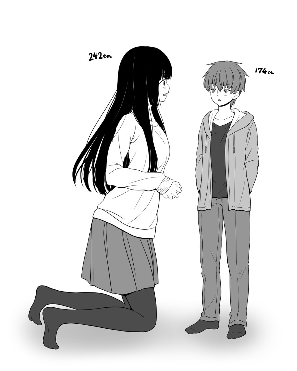 スケブでリクエスト頂いた、 リモート会議でやり取りしてた女性が実際に会ったらめっちゃでかかった図です。 skeb.jp/@funnylife1207…