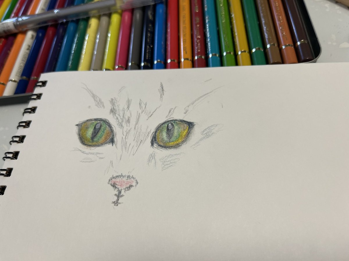 忙しすぎて 色鉛筆持つこと 何かを描こうとすること忘れてました。 下手っぴだけど ぼちぼち再開😁 これはお手本見て書きました(大塚愛は違いますよ) #色鉛筆画 #下手っぴお絵かき #猫たちに邪魔されたけど