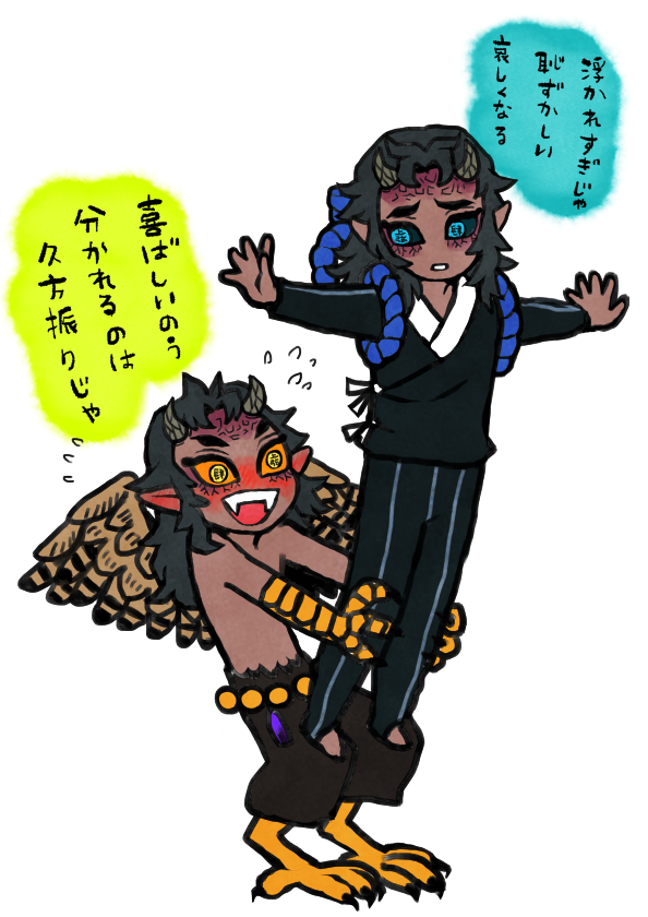 特徴をつかもうと描いた息抜きらくがき怒ちゃん哀ちゃんかわいく描けた気がする