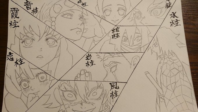 #鬼滅の刃 #絵描きさんと繋がりたい #模写 #柱集合 井黒さんと煉獄さんおかしくなった(´;ω;`) いちばんこの中で自信あるの天元様w 漢字下手くそw