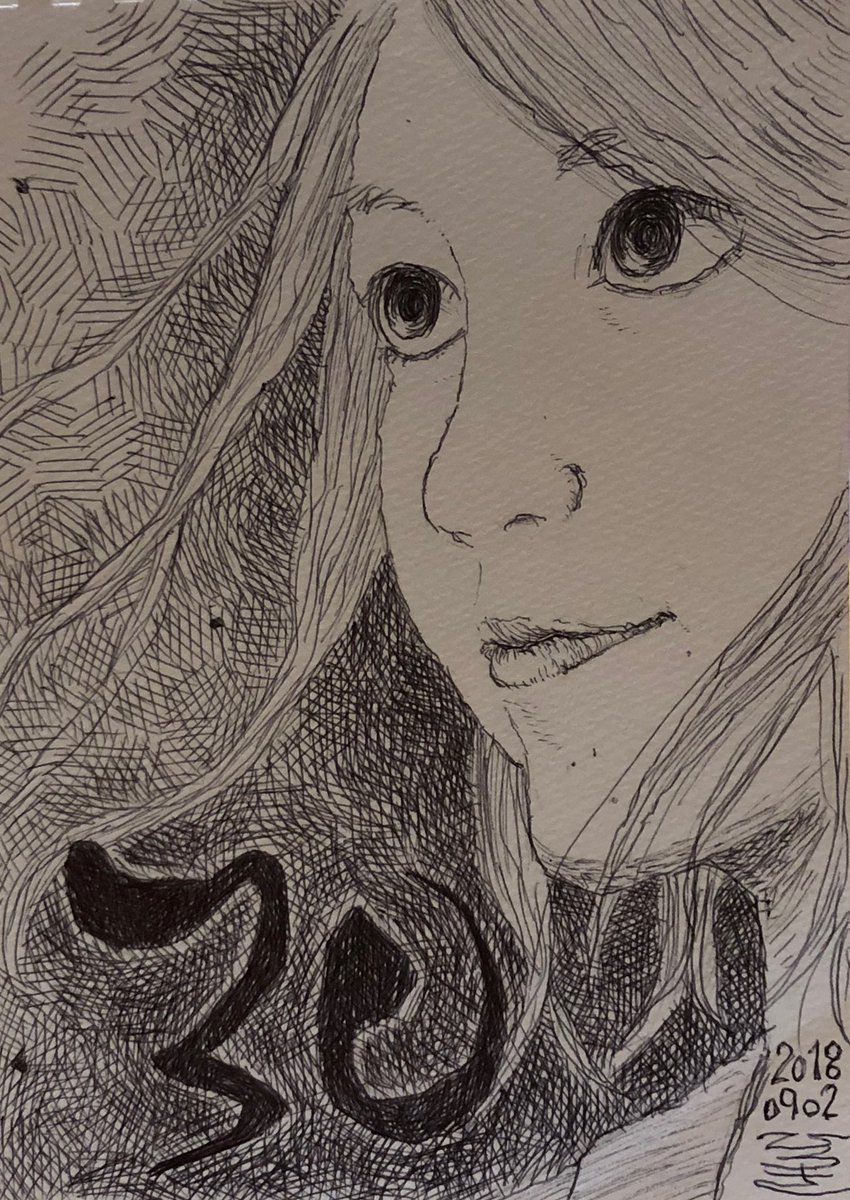 この時は被災して機材がなく、ボールペンで描きました。8年前から毎年奥さんの誕生日に描いてる似顔絵。 #イラスト #イラスト好きな人と繋がりたい #オリジナルイラスト #オリジナル #絵 #絵描きさんと繋がりたい #ボールペンイラスト #ボールペン #手描きアート #アナログイラスト #似顔絵