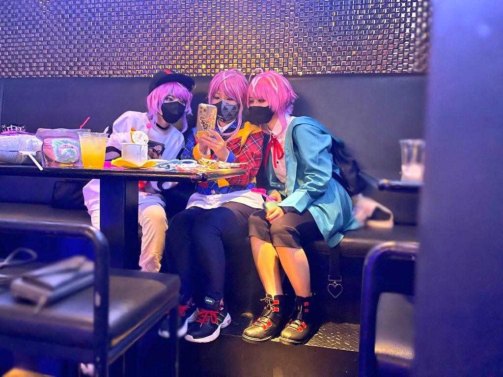 ⚠️コスプレ⚠️ あめあめ会議 🍭「ねぇこれよくなぁい?🎵」 🍭「ん~???」 🍭「なになにぃ??」 ッテイッテソウ🎵 🎤/🍭えむさん(左) 🍭ここさん(真ん中) 🍭ふらわ~ちゃそ(右) 📷️さん→ねここさん!