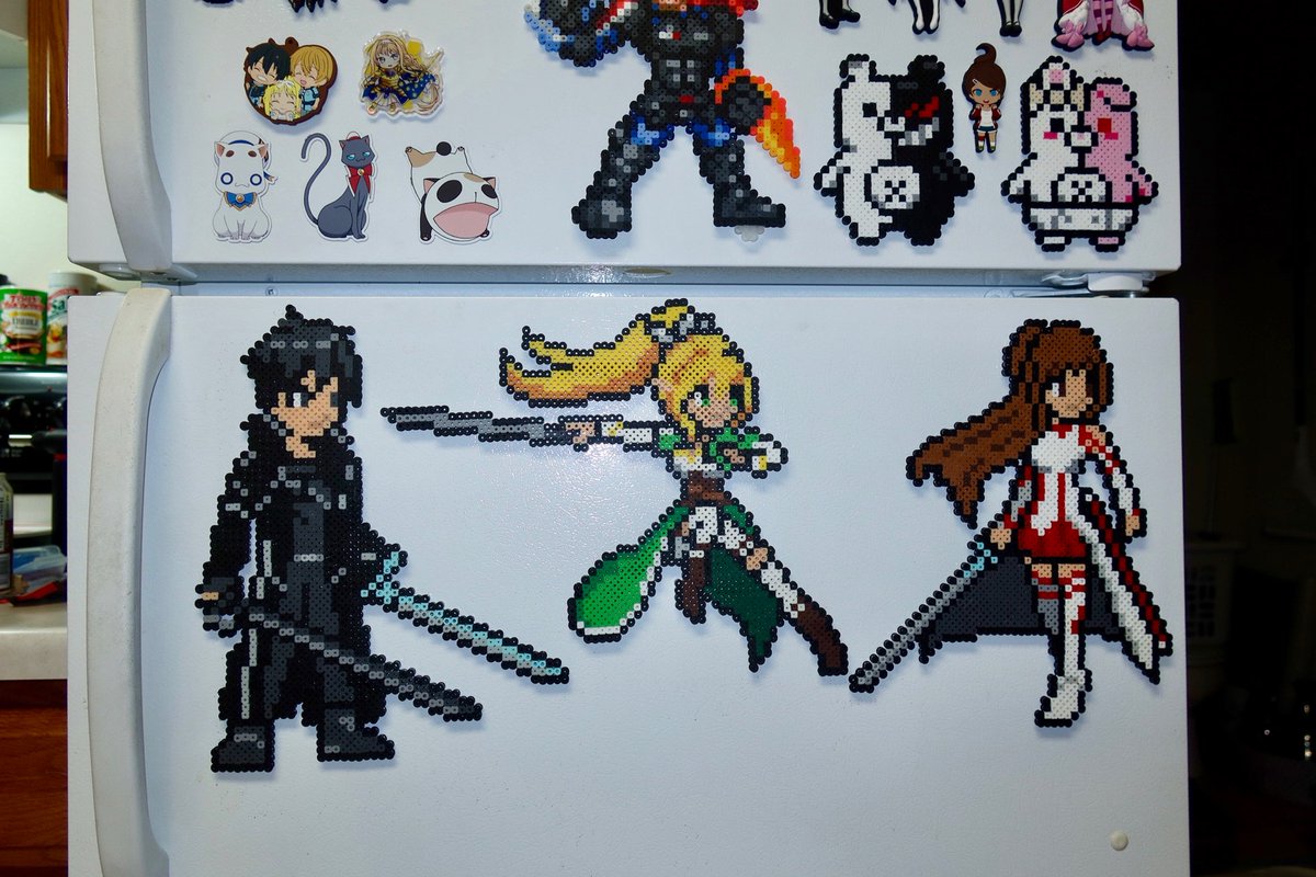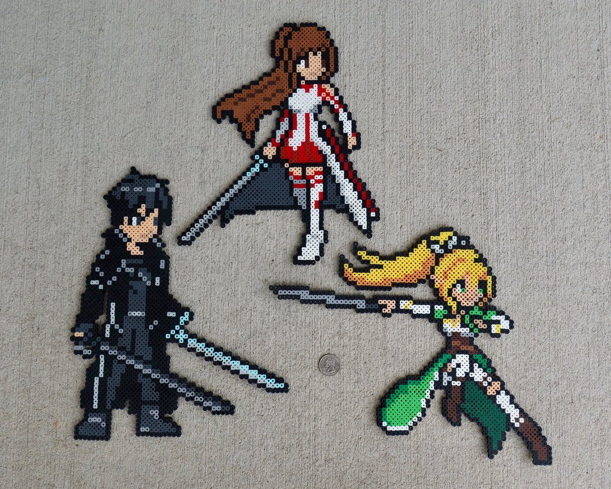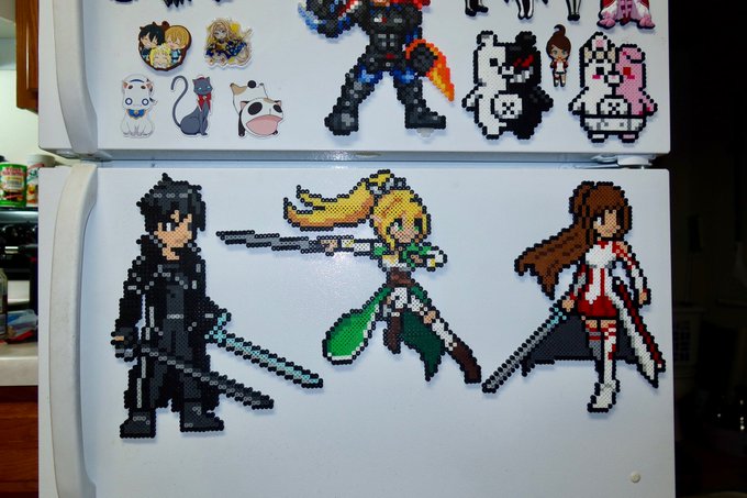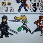 You can find some cool shit on eBay. ⚔️ Seller is Hollinvest. I had some concerns about them being backwards (swords in the wrong hands) and she reironed them to lay better facing the right way. I’m tempted to ask her if she can make others! #SAO#perlerbeads#pixelart