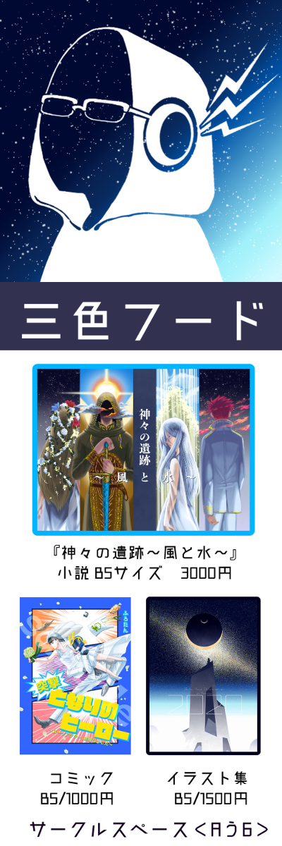 9/4(日)コミティア141でます。 サークルスペースみ03b<三色フード> 新刊なんとか間に合った……。 今回あまり刷ってないのでご来場される方はお早めにお越しください。 売り子で母がおります✌️ #コミティア141 #COMITIA141